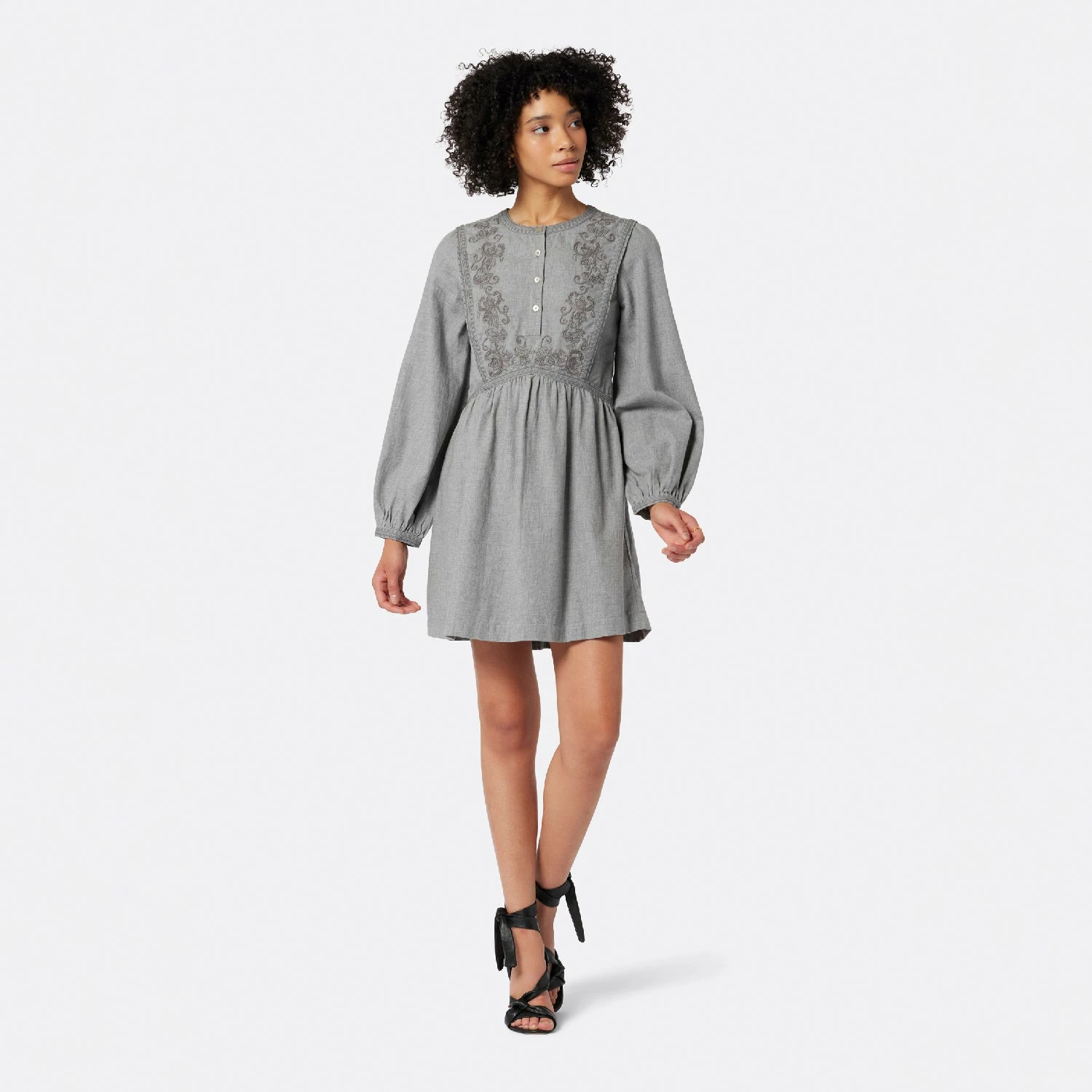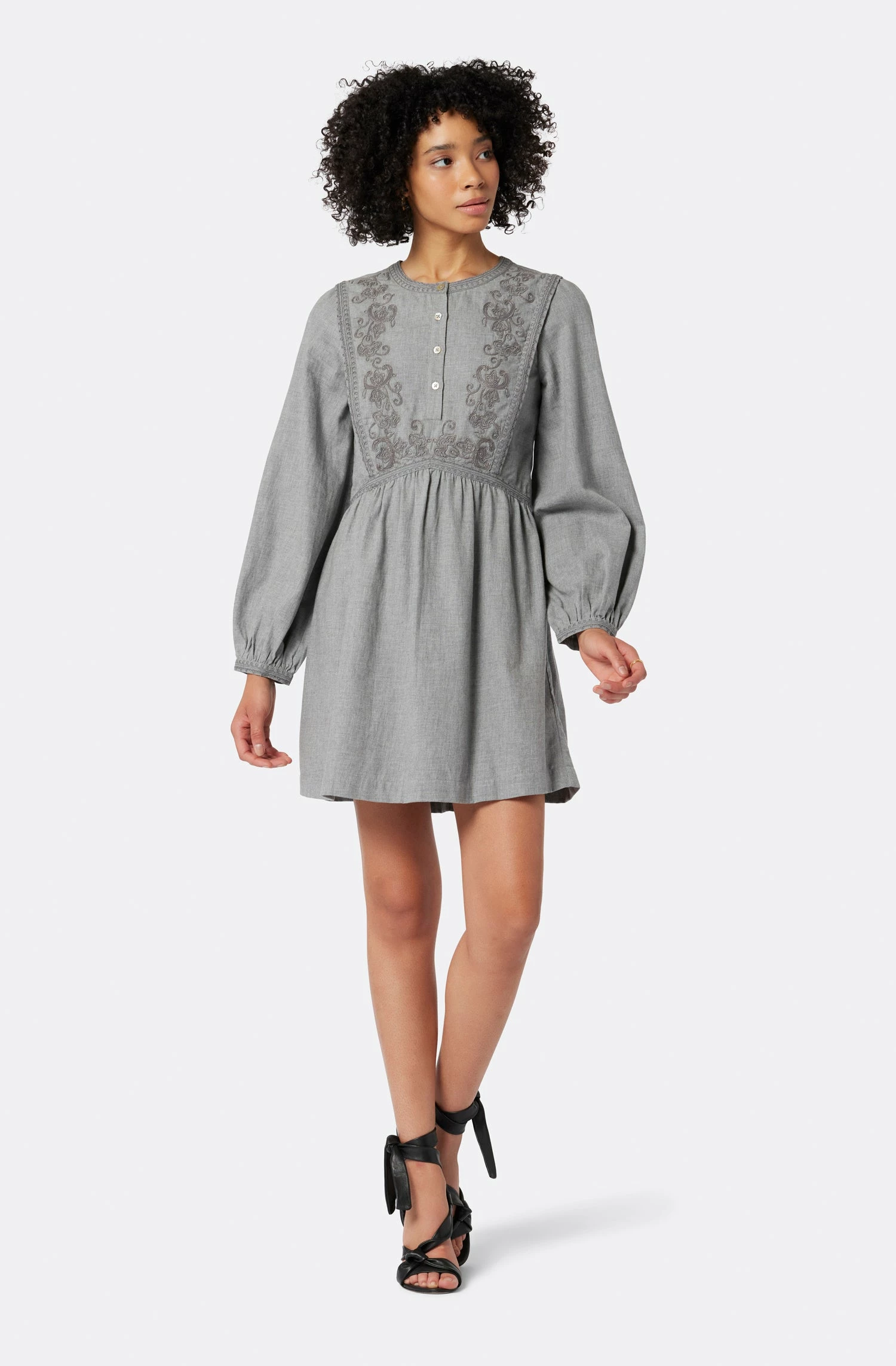 Introducing your new quintessential fall dress: The Arrazi. Flowing silhouette, hand embroidered bib details, and voluminous sleeves; throw on a pair of your favorite Joie boots and live your best – romantic- life.