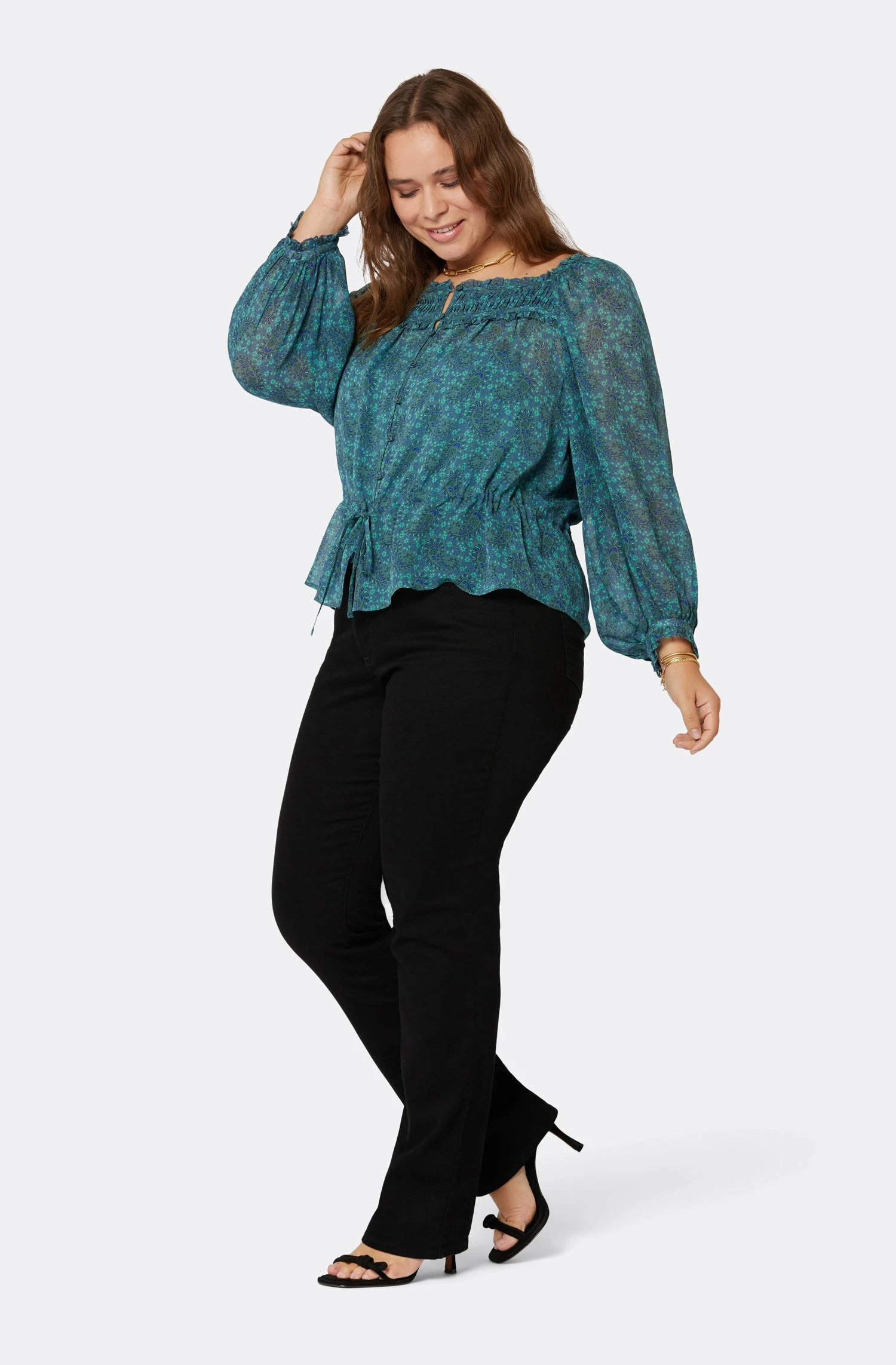The Asseline is the most lively top out there thanks to its fluid shape and rich pattern. The way this silk design sits on the body also accentuates details like the smocked square neckline, drawstring waist, and ruffled cuffs.