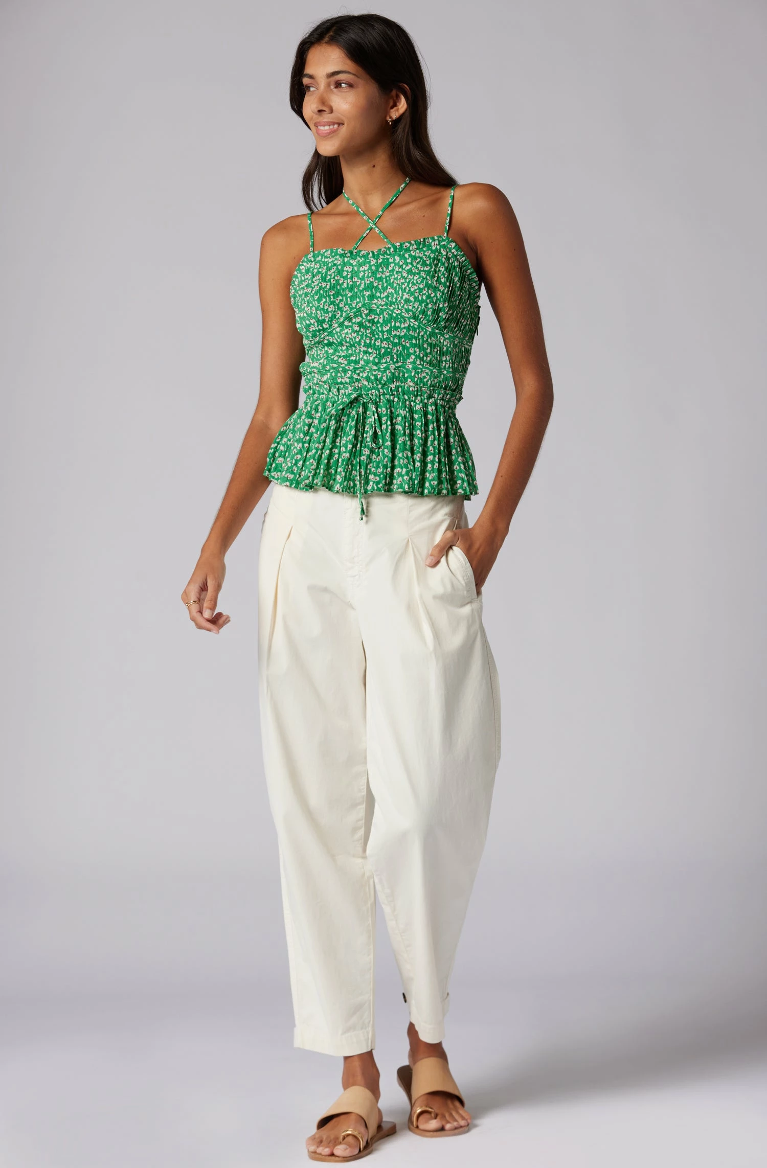 The Baker is a playful top with a tiered bodice, thin straps, and a lot of smocking details for a touch of romance. Wear this design with denim shorts for a true summer look.