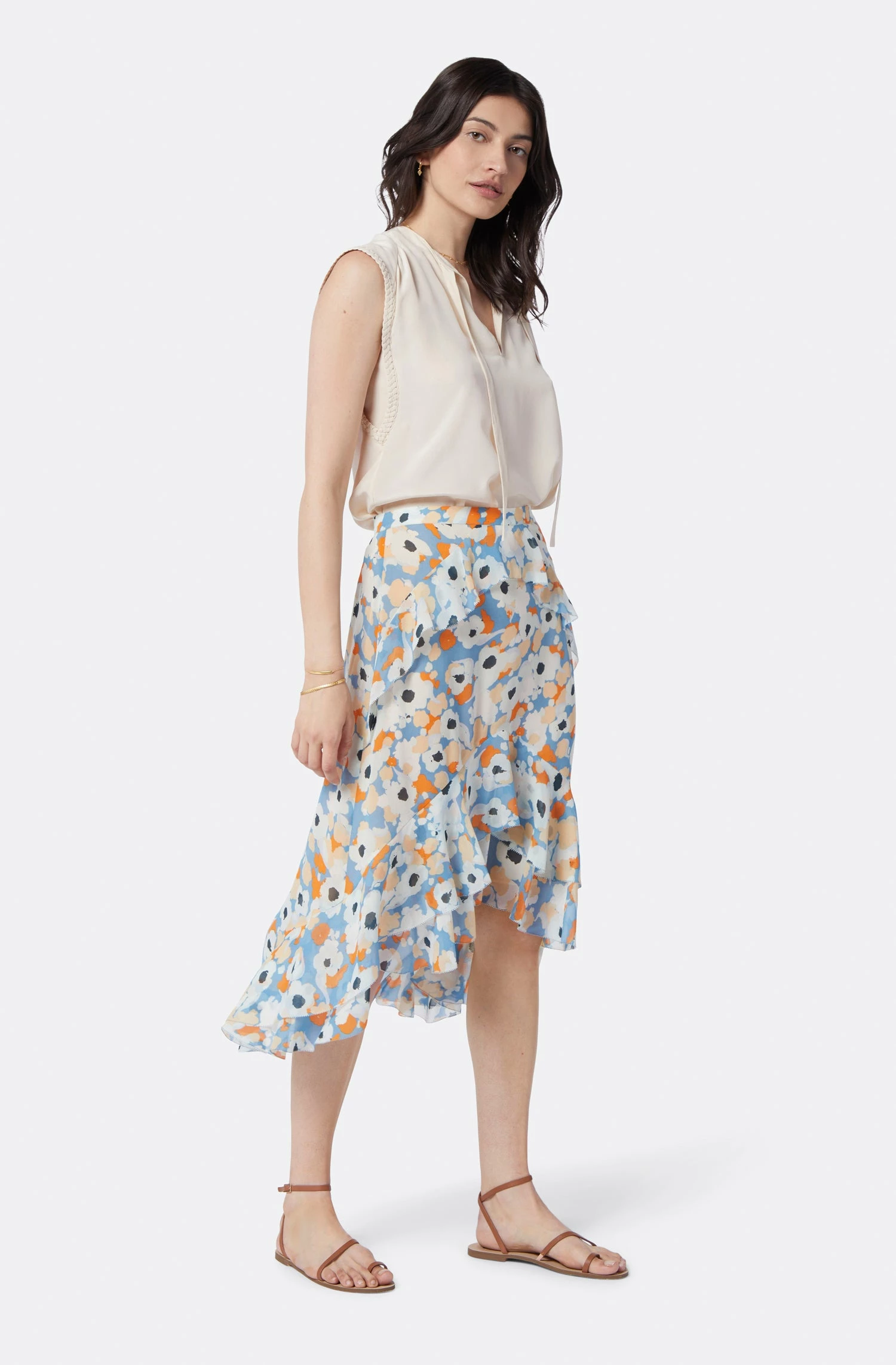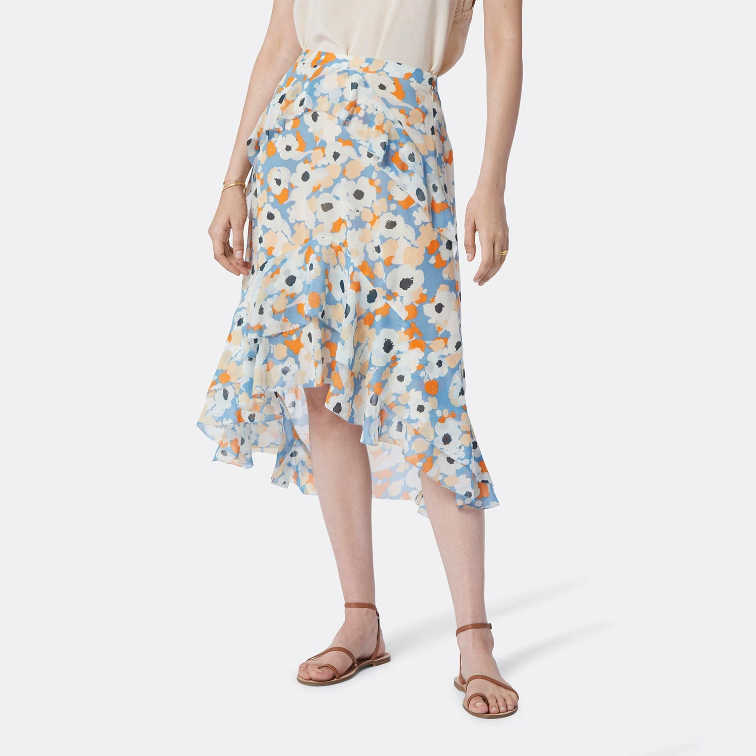 The Brigida moves like a spring breeze thanks to its tiered structure and ruffled details. This silk skirt feels light and luxe while making quite the statement with a fresh spring pattern.