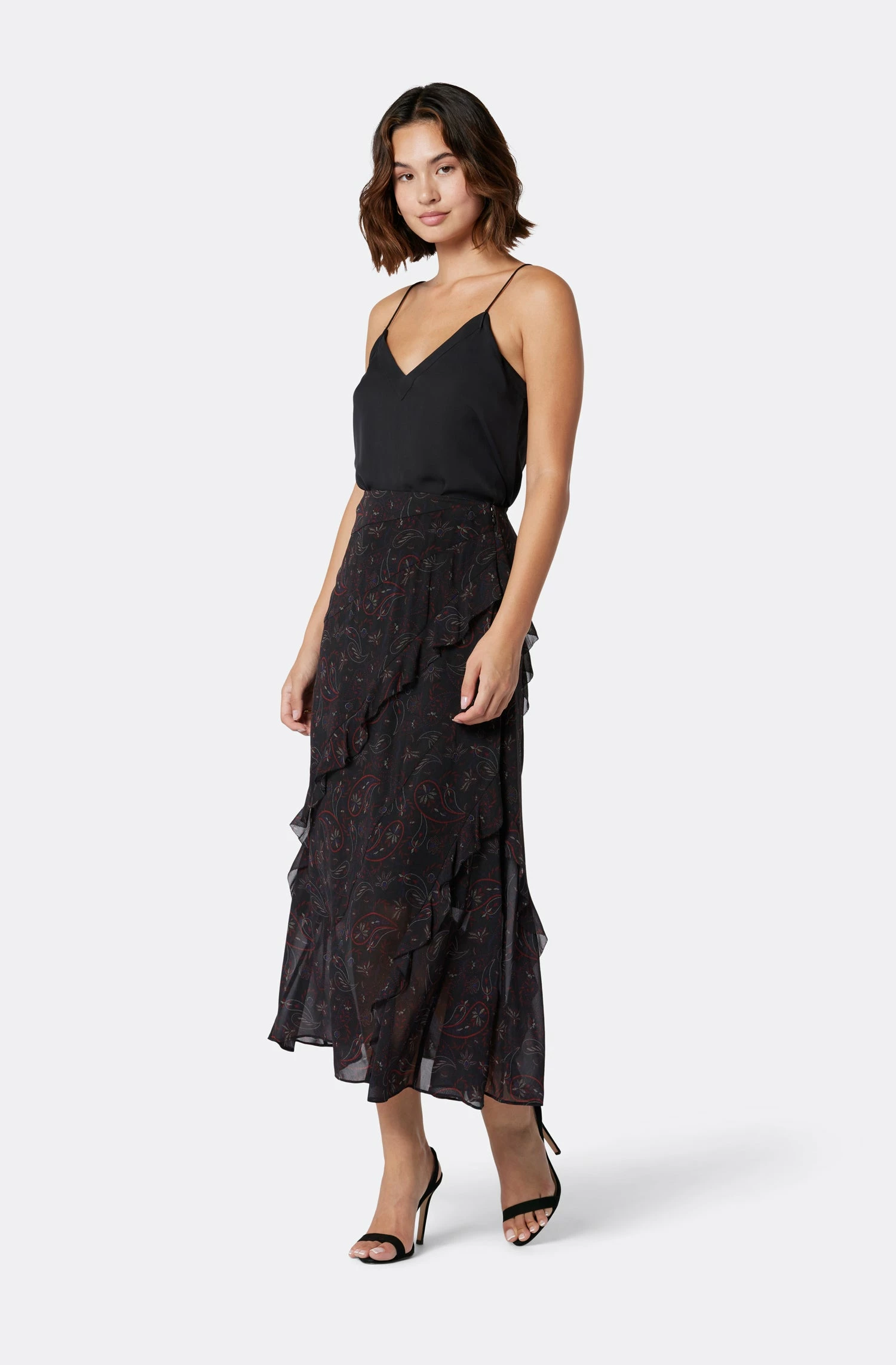 The Caillie brings movement to any look thanks to its tiered design and lightweight silk silhouette. This silk skirt is perfect for your everyday style when paired with a basic top and sneakers for that fall layered look. The ruffles just add a bit of drama to the look.
