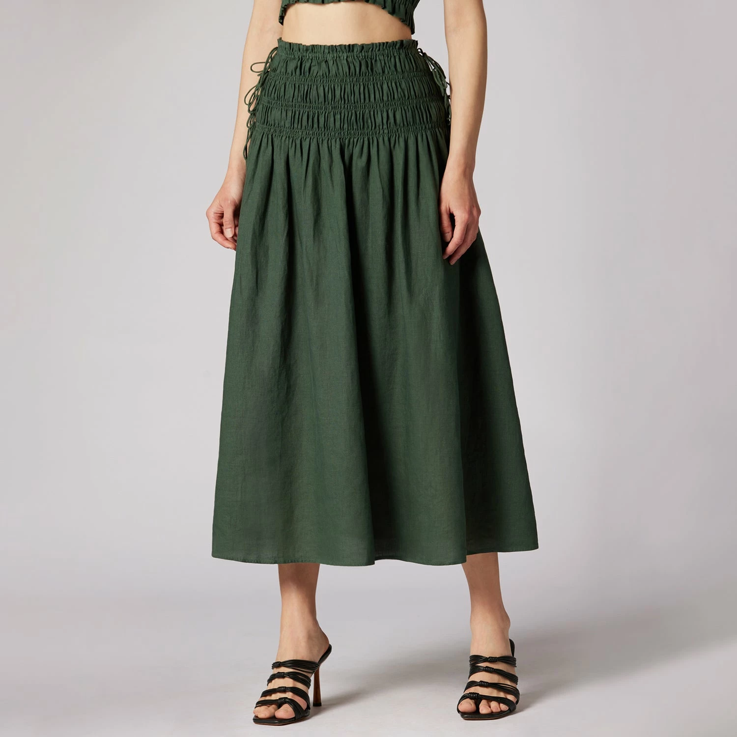SKU: 8027703541986 Categories: Bottoms, Clothing Tags: Age_group:adult, Bottoms, Category:Bottoms, Clothing, Color:Jungle Green, Custom_label_2:Sale, Gender:female, Generic_color:Green, Linen, Not Clearance, Product:Clover Linen Skirt, Sale, Sale bottoms, Sets, Skirt, Summer