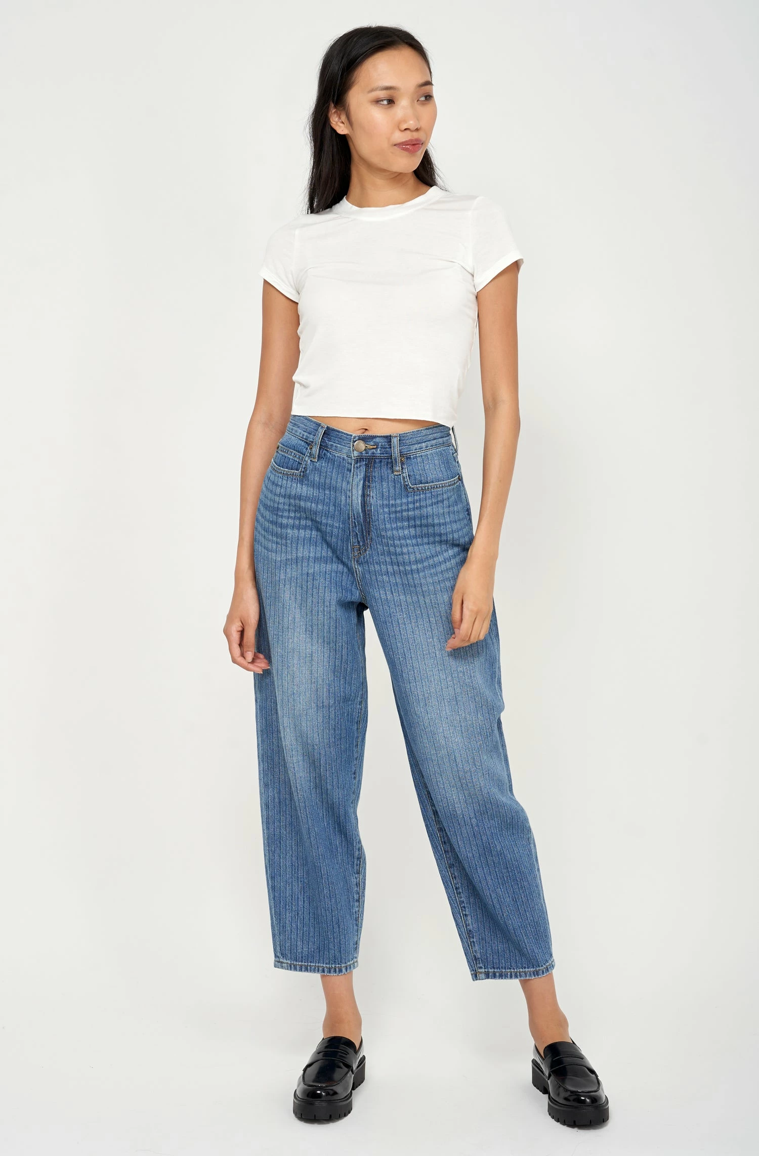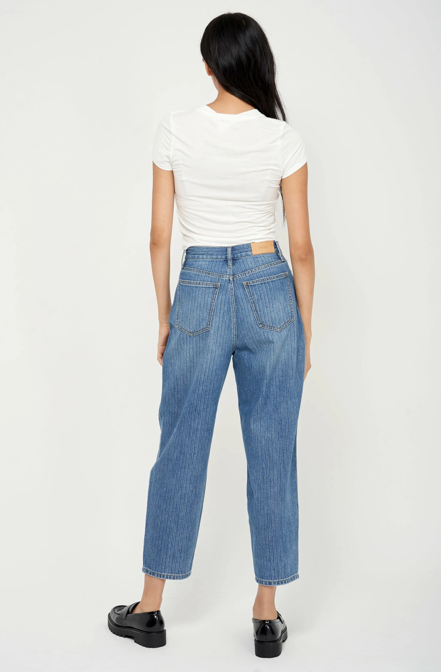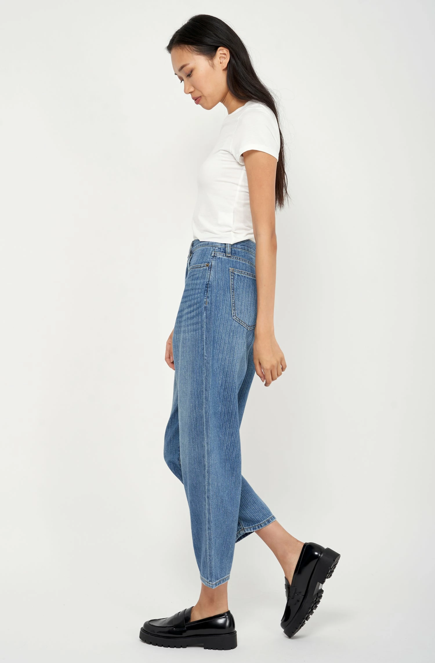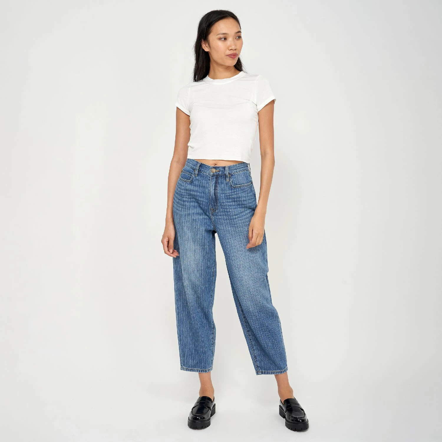The Cordelia offers a unique silhouette that tapers down from the hips to the ankle, creating a slightly loose and slouchy appearance at the hips and thighs and gradually narrowing down the leg. This trendy and modern style provides both comfort and a fashion-forward edge to elevate your casual outfits.