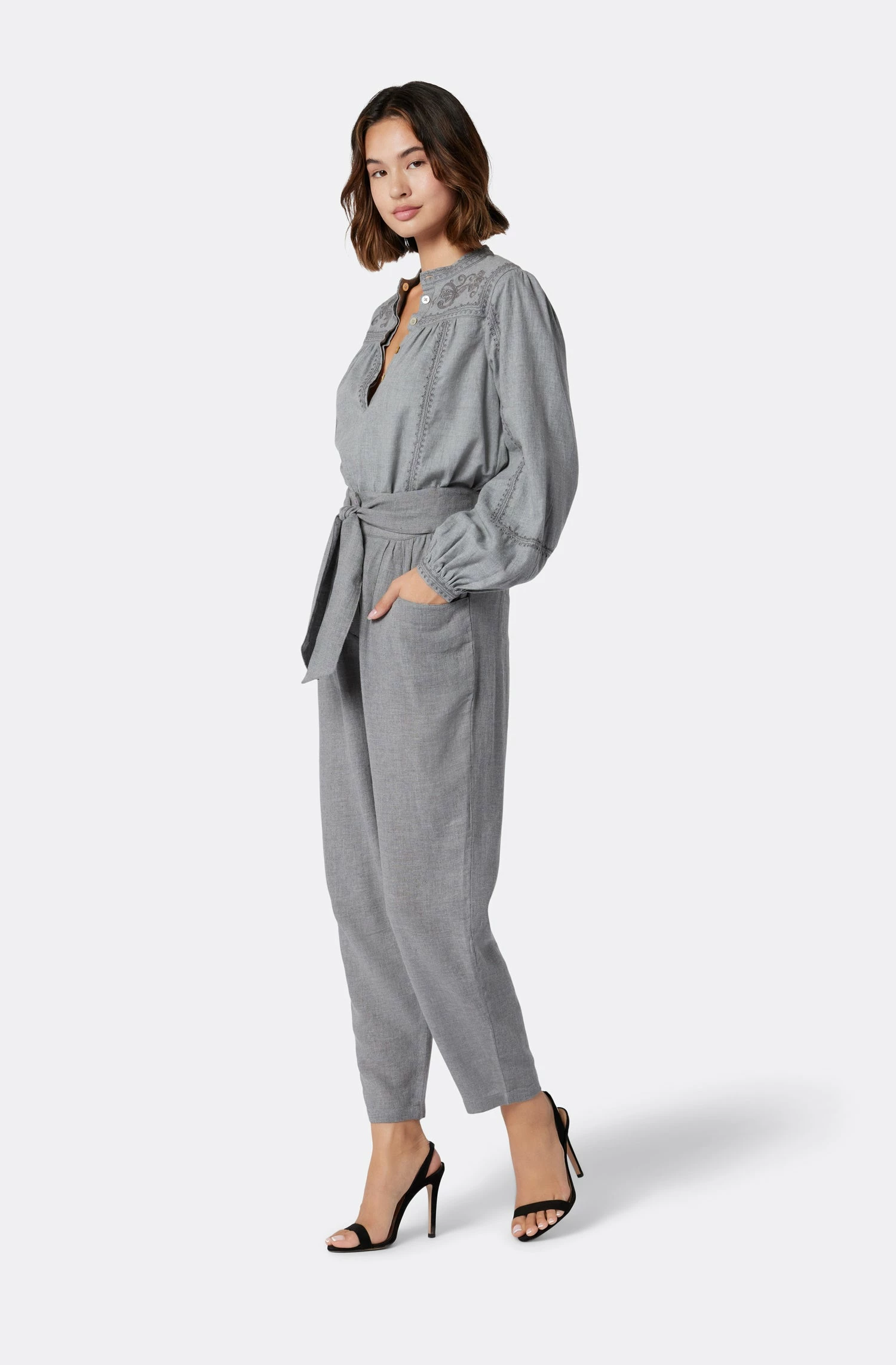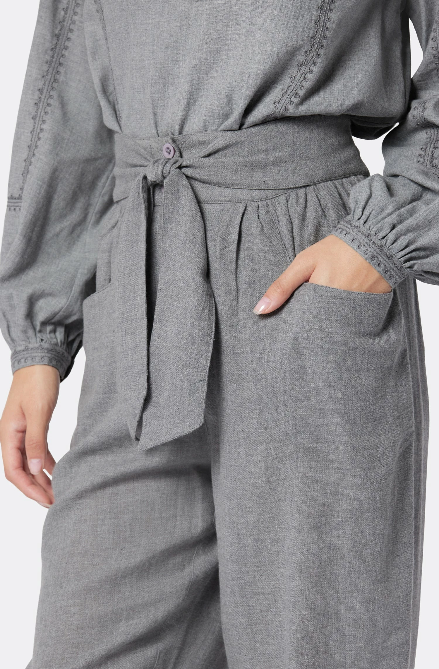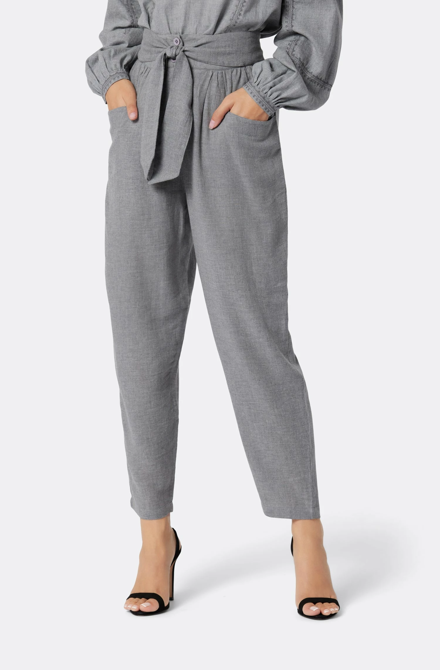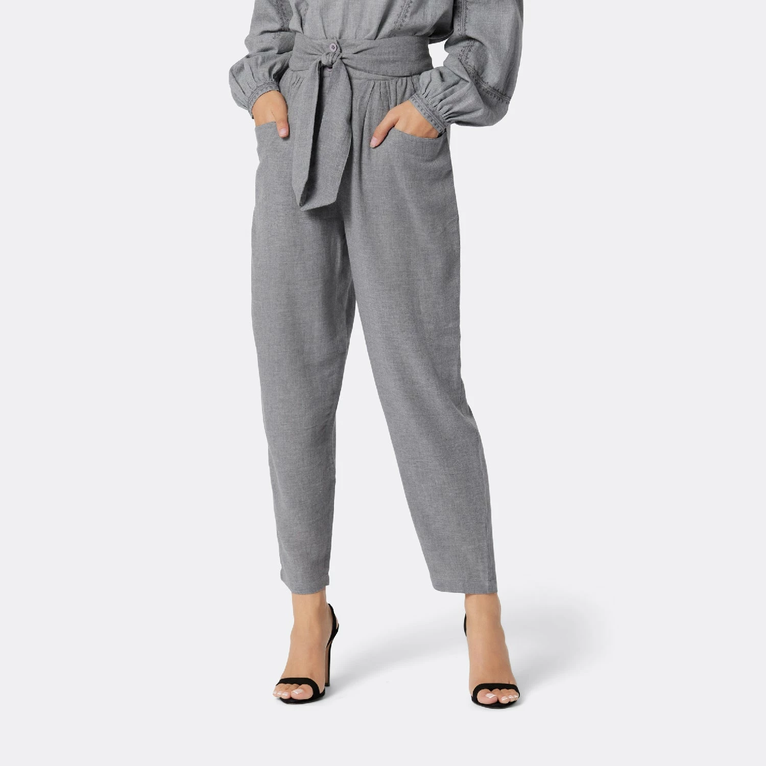 Cropped leg, easy fit, and a tie belt for a flattering shape; The Dalou brings comfort and style seamlessly. Pair it with a flowing blouse and casual booties for an elevated everyday style, or with The Anoual for a matching look.