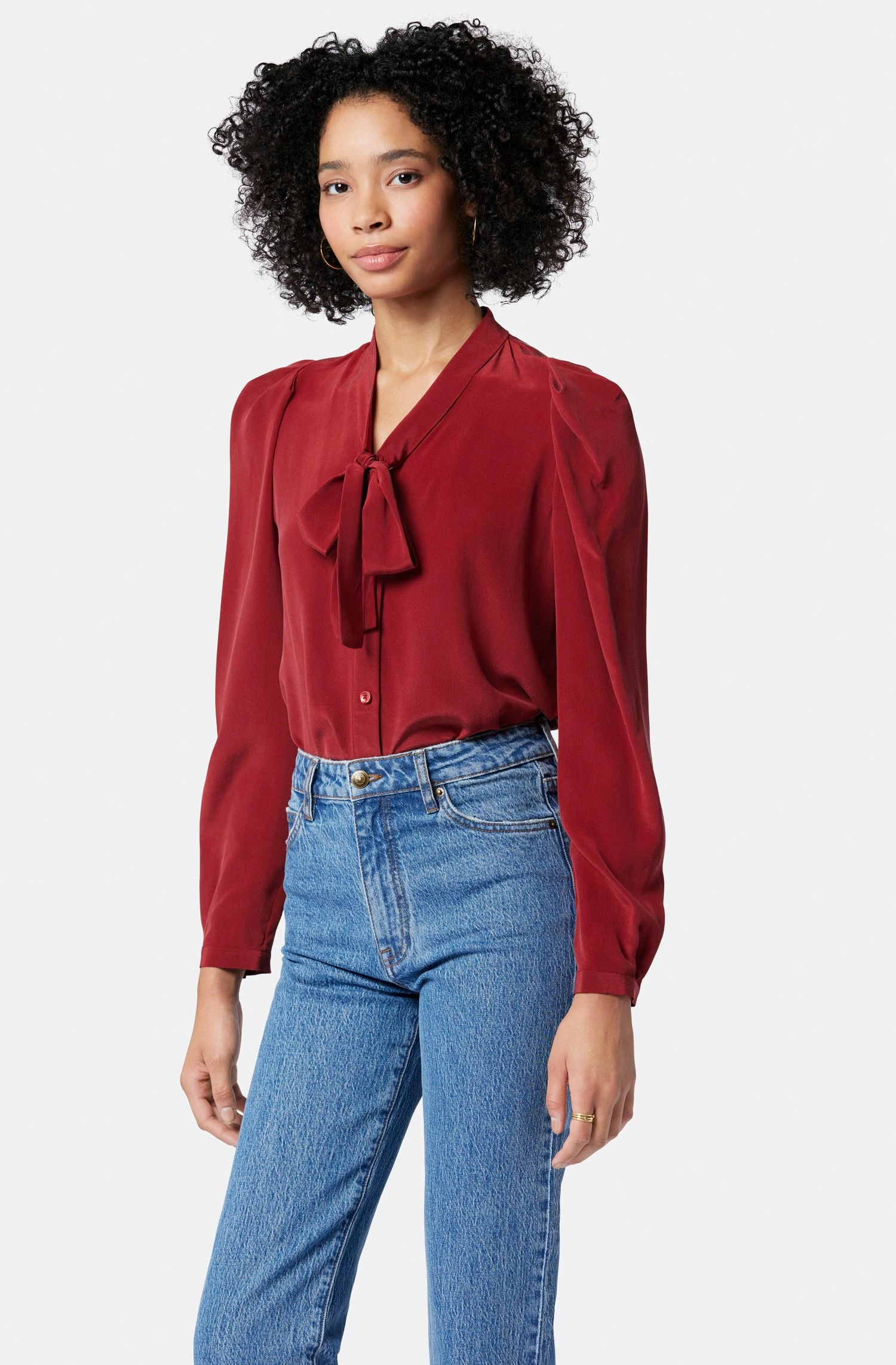 SKU: 7892688535778 Categories: Shirts & Blouses, Tops Tags: Age_group:adult, Category:Tops, Clothing, Color:sundried tomato red, Custom_label_2:Sale, Final sale, Gender:female, Generic_color:Red, Not Clearance, Product:Eldridge Tie Neck Silk Top, Sale, Sale Eligible, Sale top, Silk, Tops