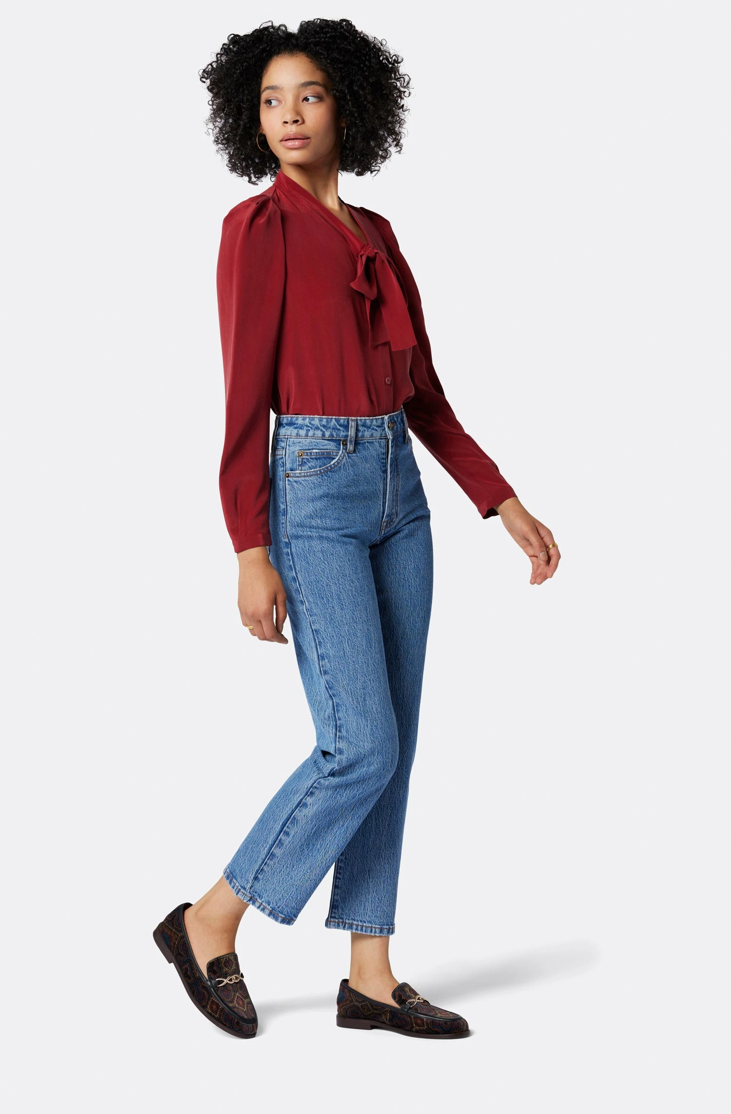 The everyday shirt, elevated, The Eldridge is a showstopper with its relaxed silhouette, necktie, and gathering details around the shoulder.