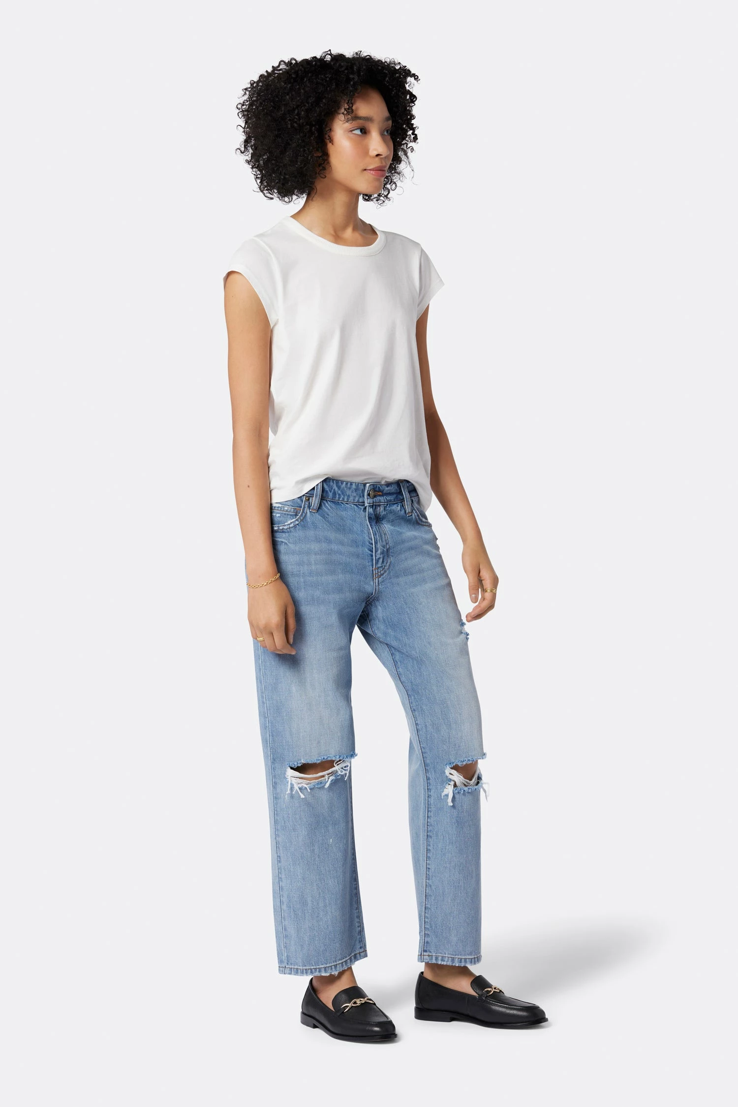 The only boyfriend you need right now, The Estella sits on the hips with effortless style. This “rigid” pair of jeans is sturdy, robust, and comfortable to wear while looking great on the body. You can style it however you like, have some fun with it.