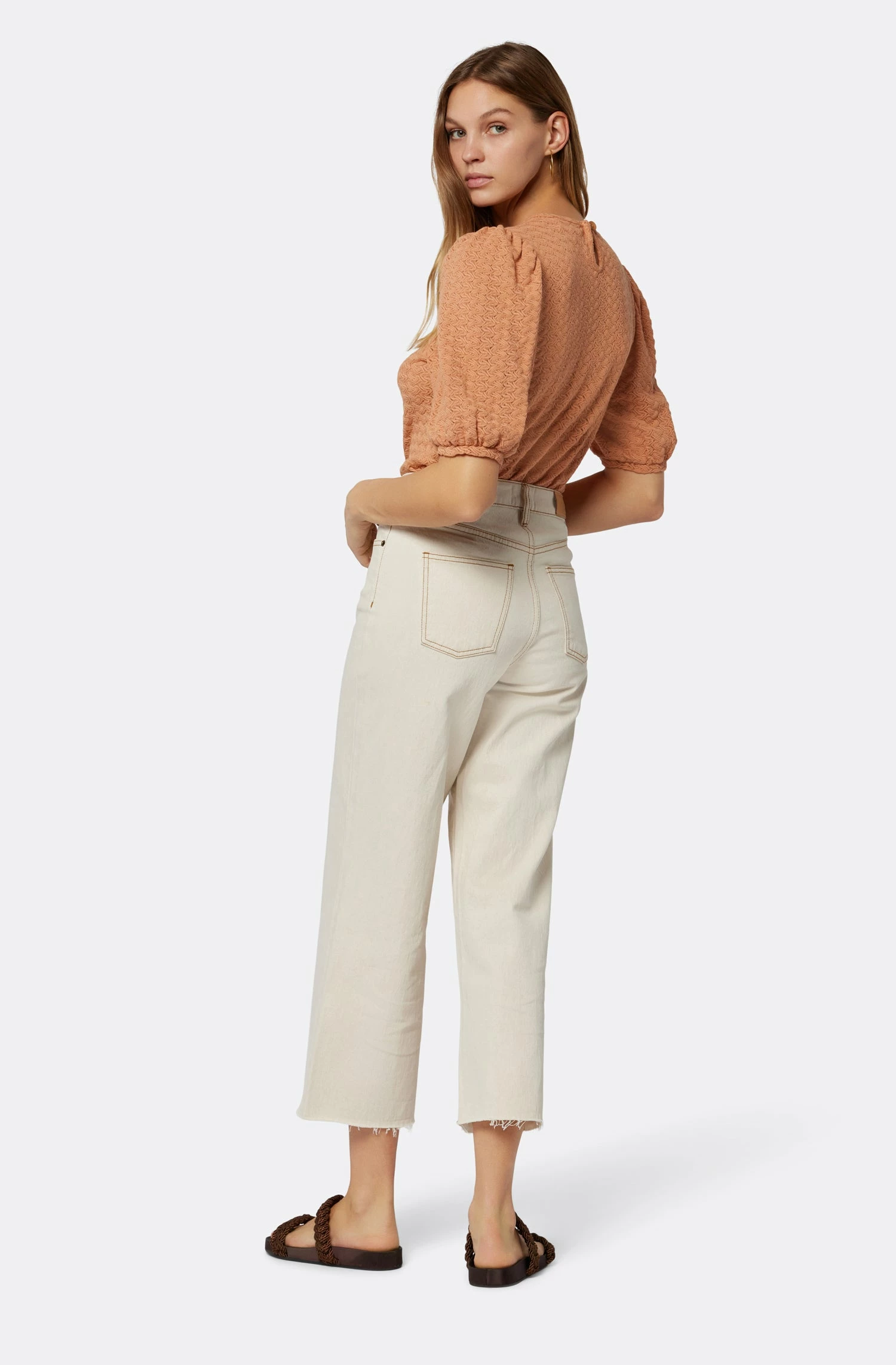 Voluminous sleeves, keyhole back details, and a slightly-cropped hem, The Jordie is not your typical everyday top. Wear this jacquard knit lace design with our denim to the office and look casually cool.