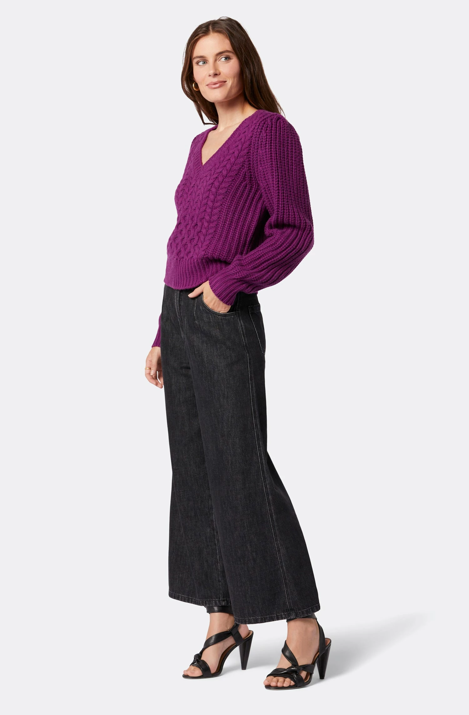 The Menara is your go-to everyday sweater that does not go unnoticed thanks to its romantic, slightly-cropped, fit. This cable knit looks great with a pair of jeans, or one of our leather bottoms for a more sophisticated look. The Menara is 100% wool.
