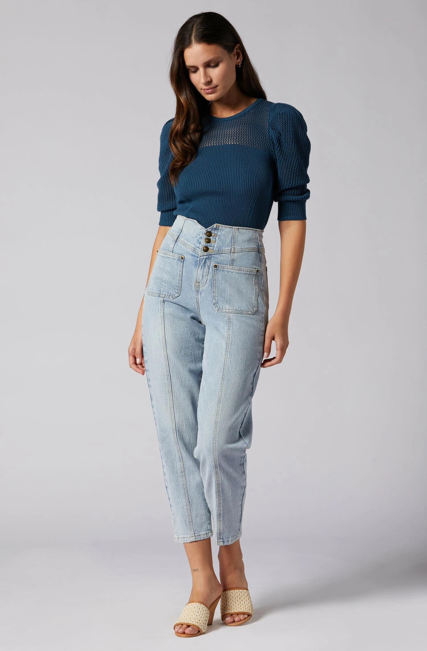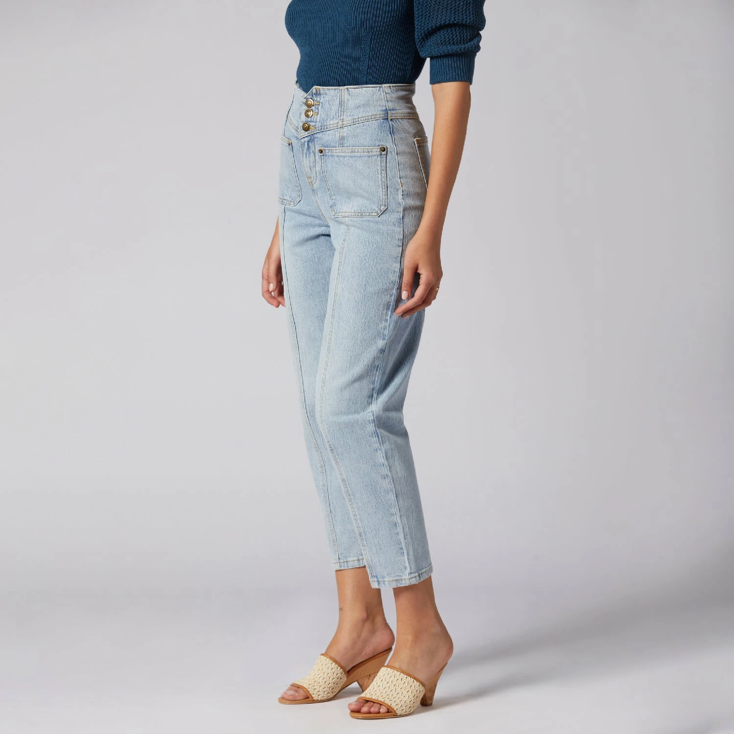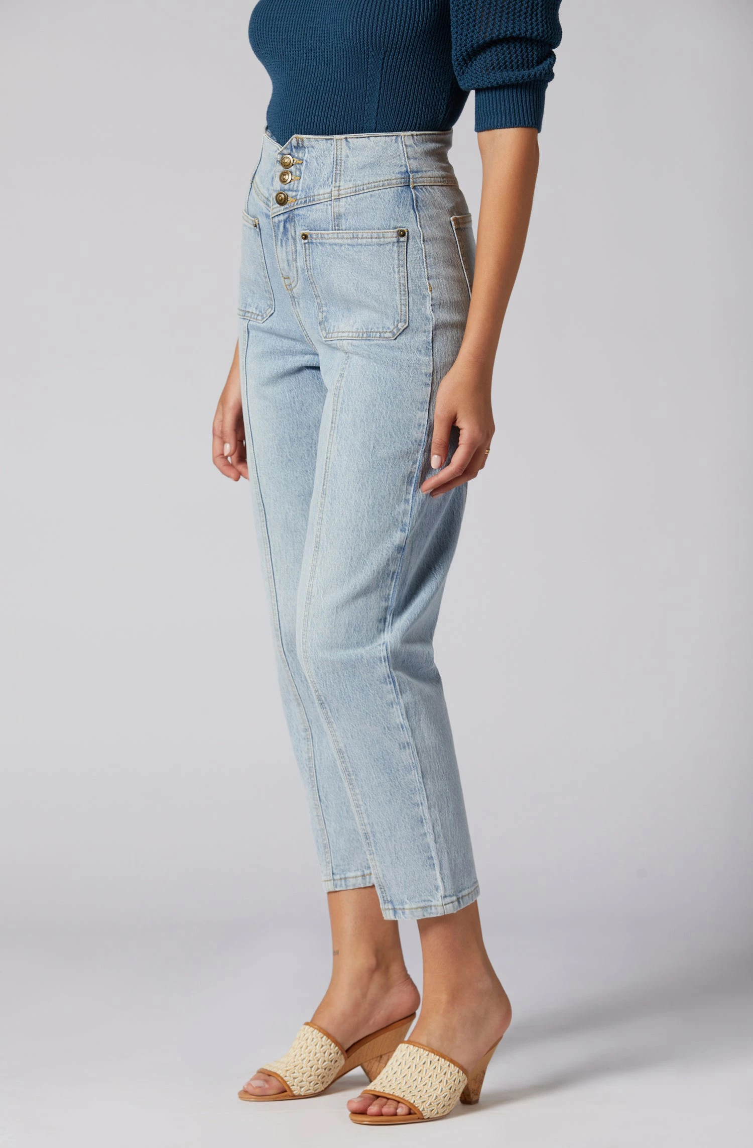 The Olivia is quite the statement piece with its flattering fit. High waist, cropped leg, and two front pockets; this denim design can be styled with anything from a worn-out tee to a silk blouse.