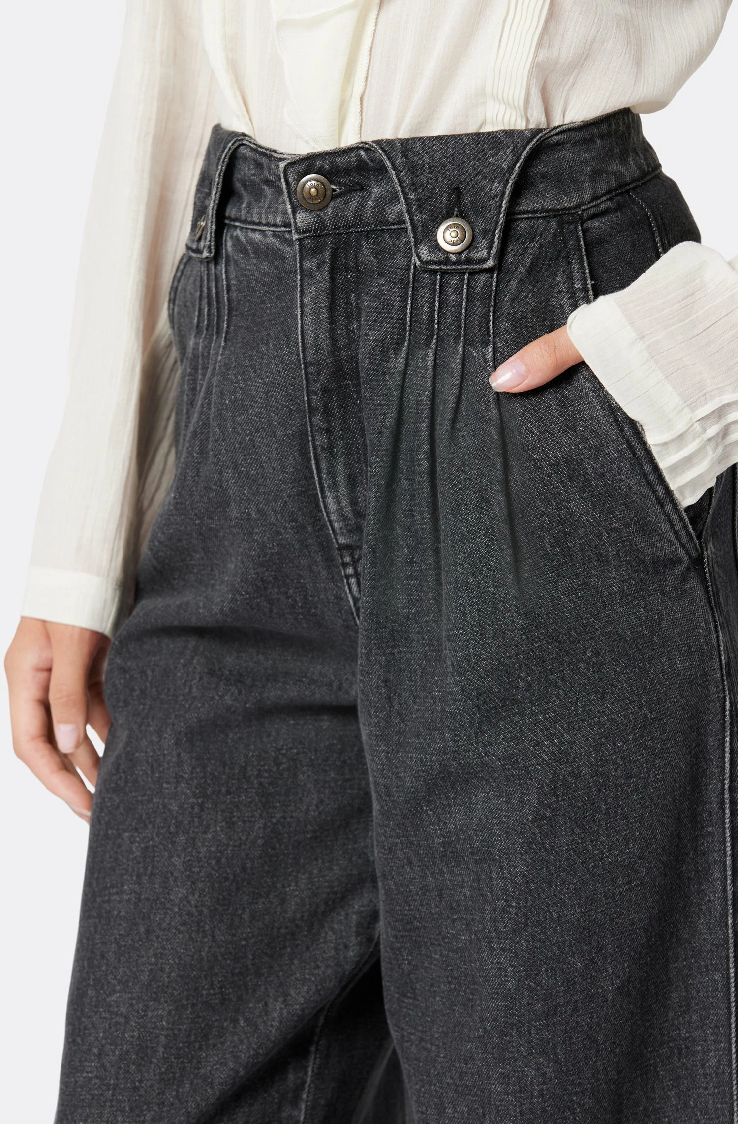 If you want your denim to stand out, go with The Porter. With a wide, cropped leg, a high-rise waist, pleating details on the front, and patch pockets in the back; make The Porter your new wardrobe staple.