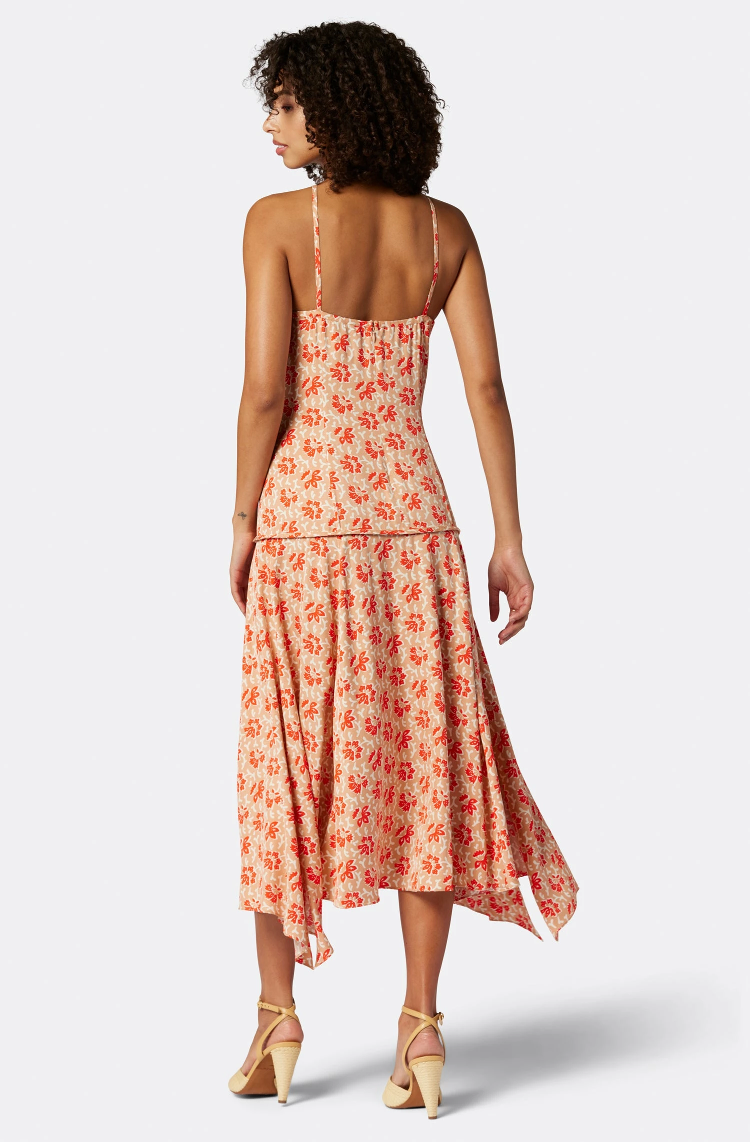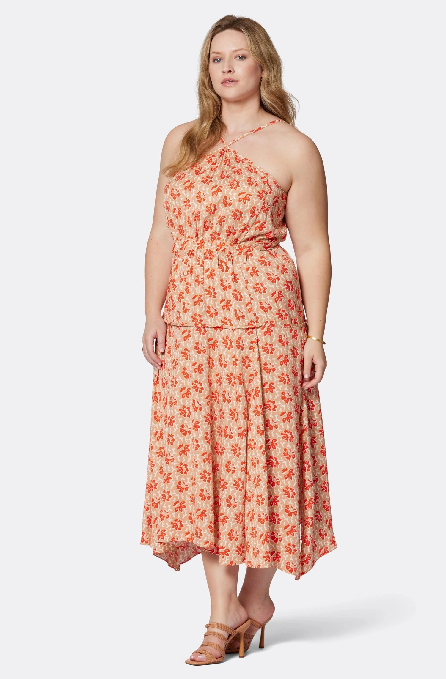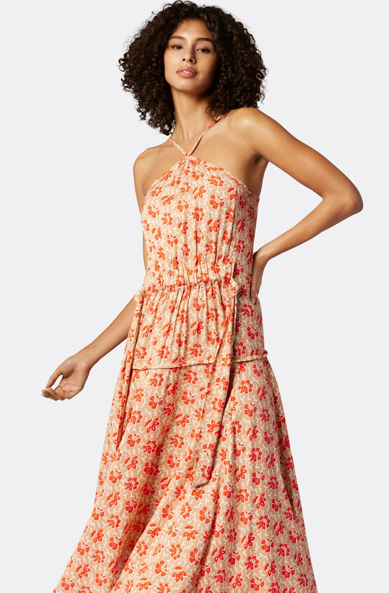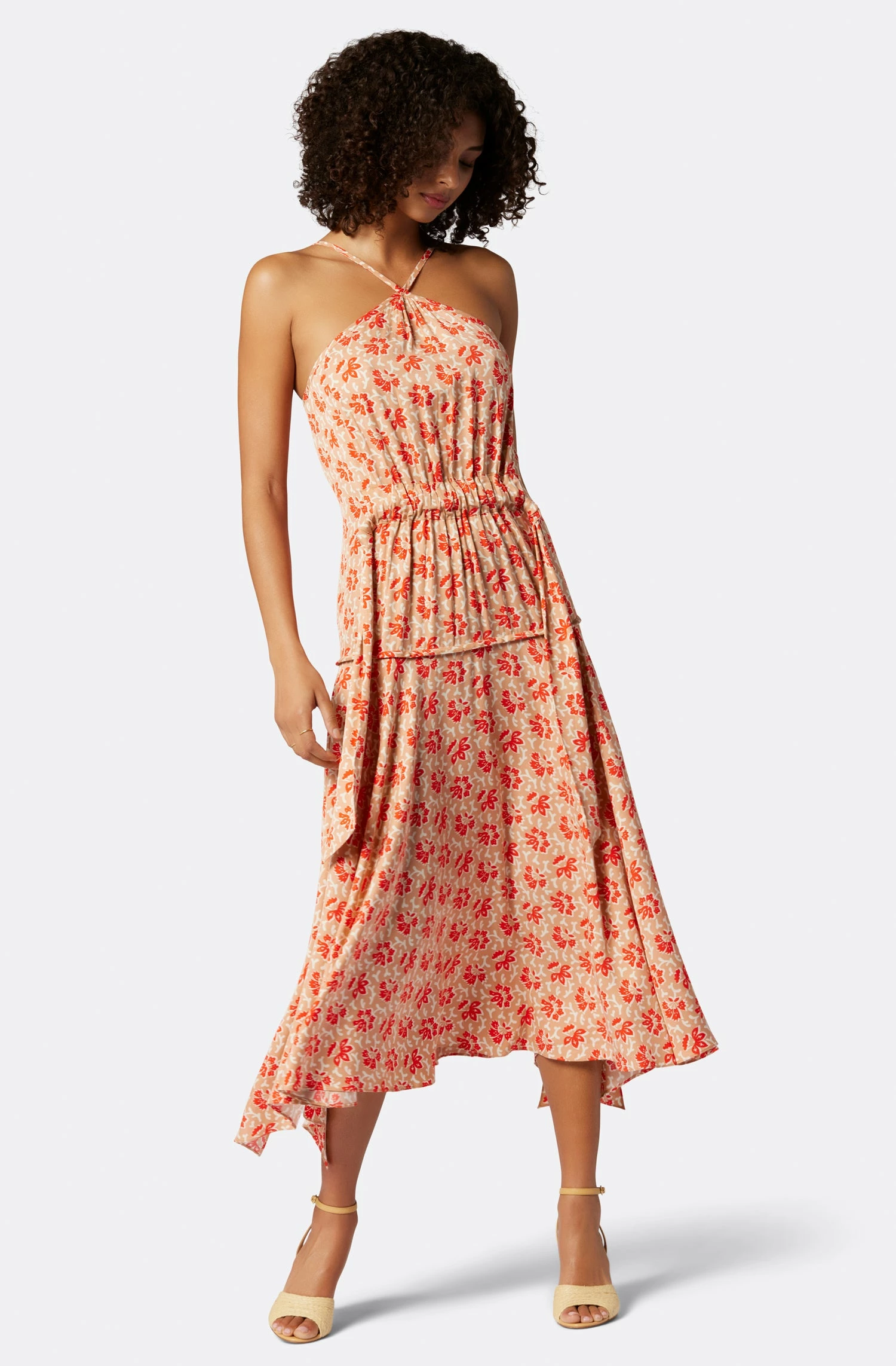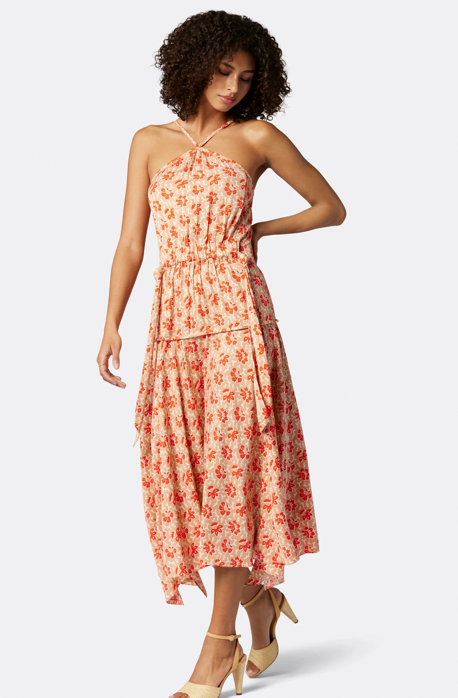A halter neckline dress with a high-low hemline and knotted waist; the perfect transitional piece that looks great dressed up or down.