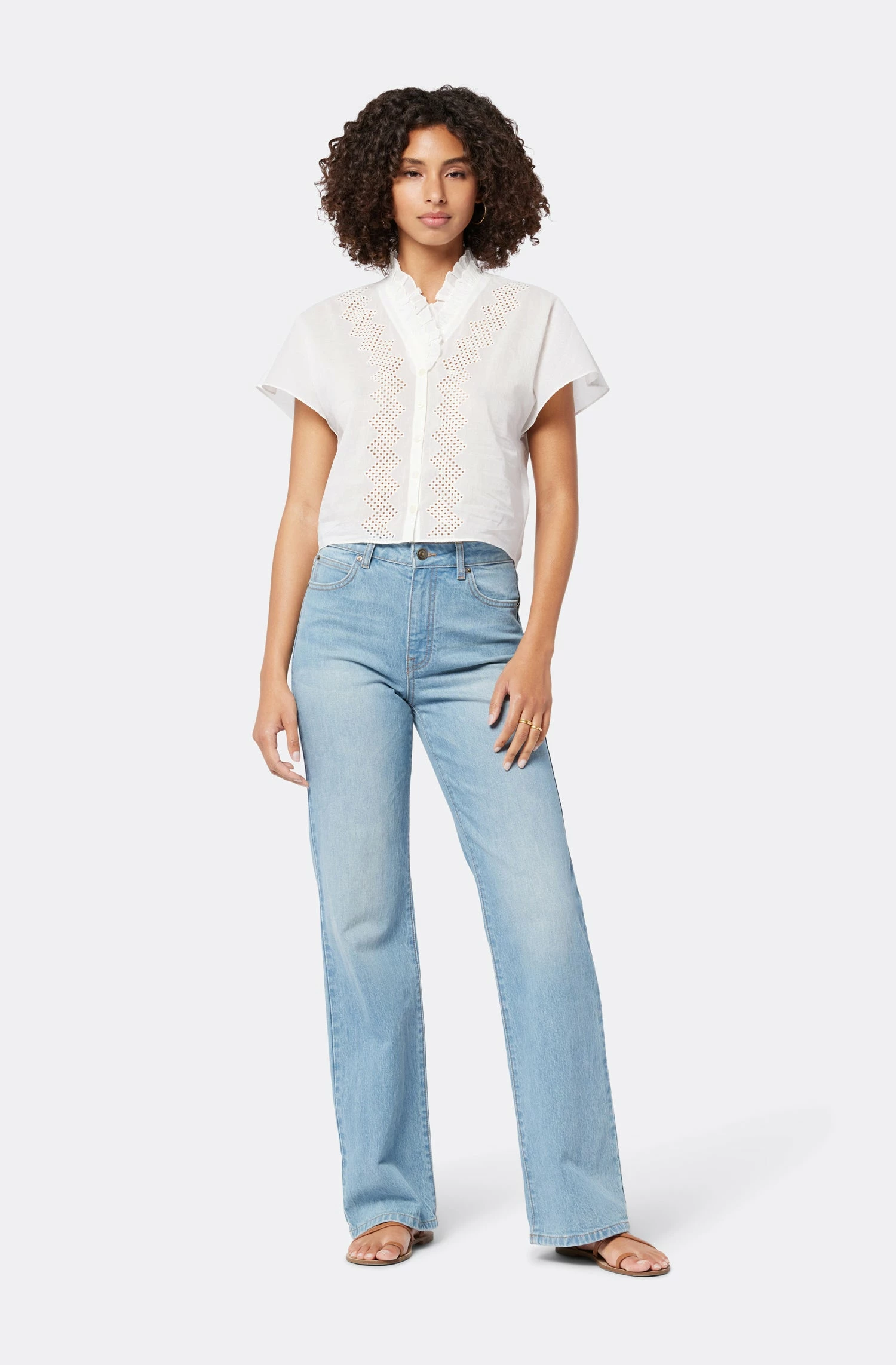 Soft, sheer cotton voile with embroidery, ruffles around the neckline, and an overall nostalgic look; The Venus is here to elevate your daily office look or your running errands attire.