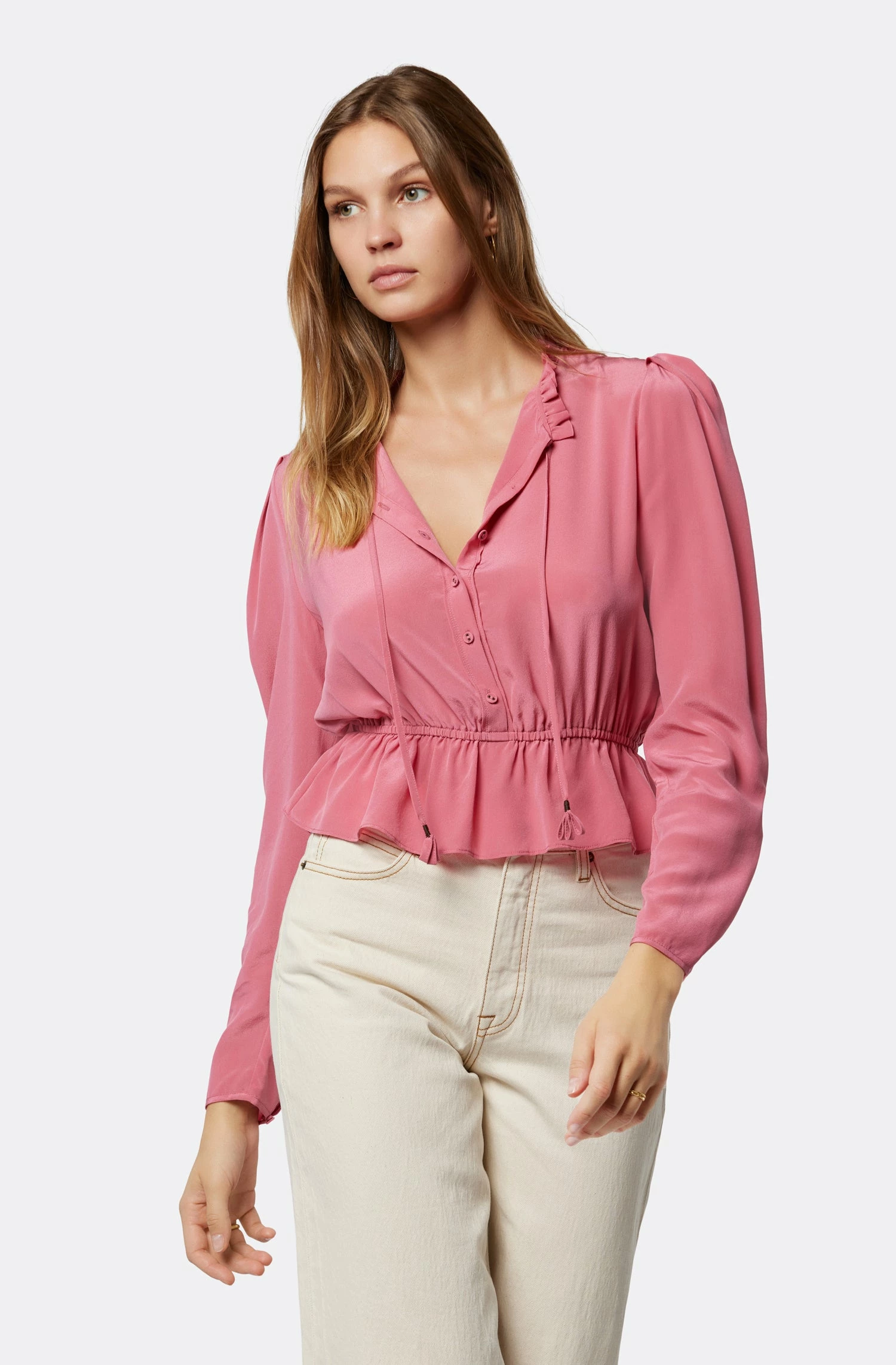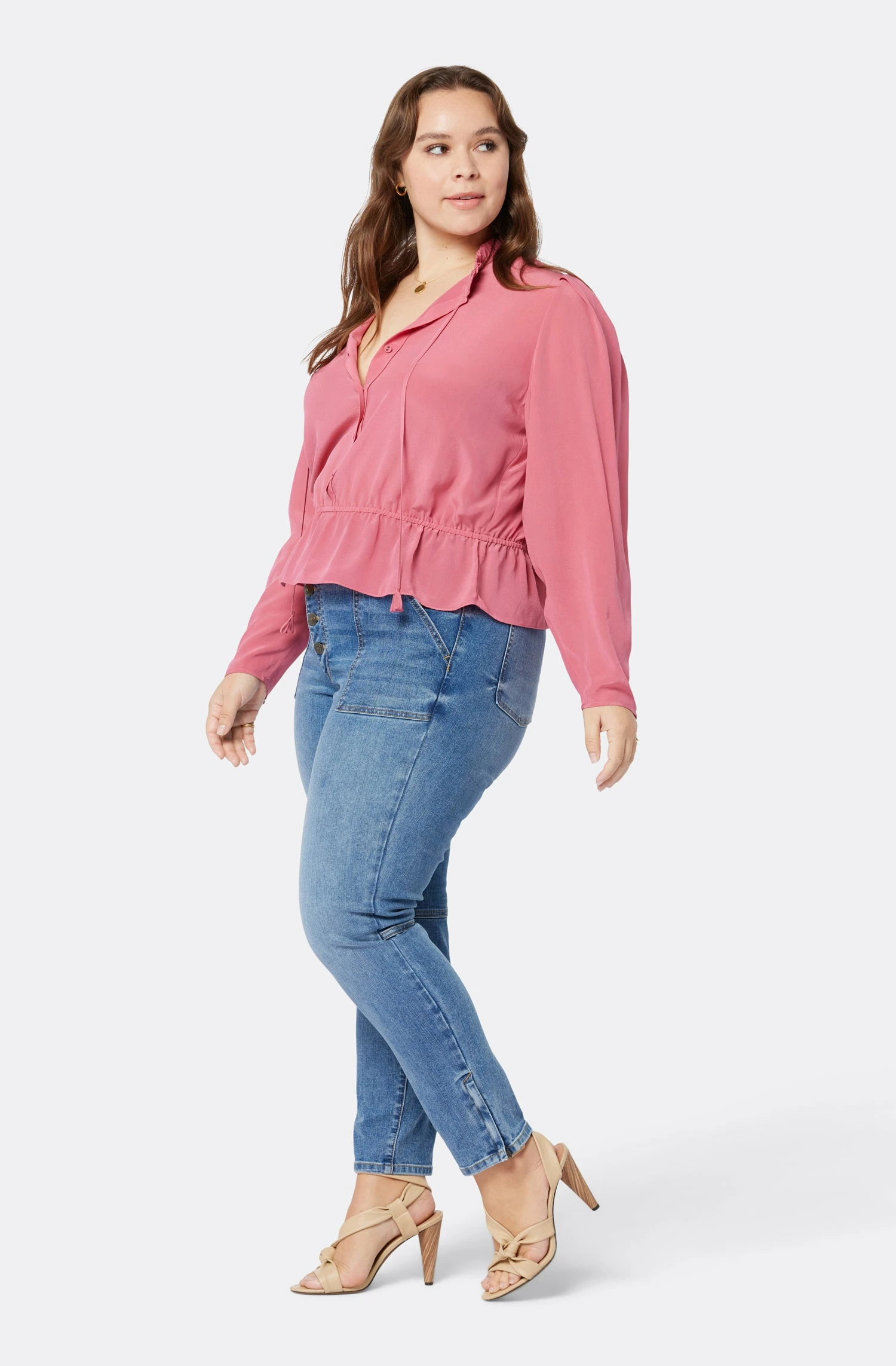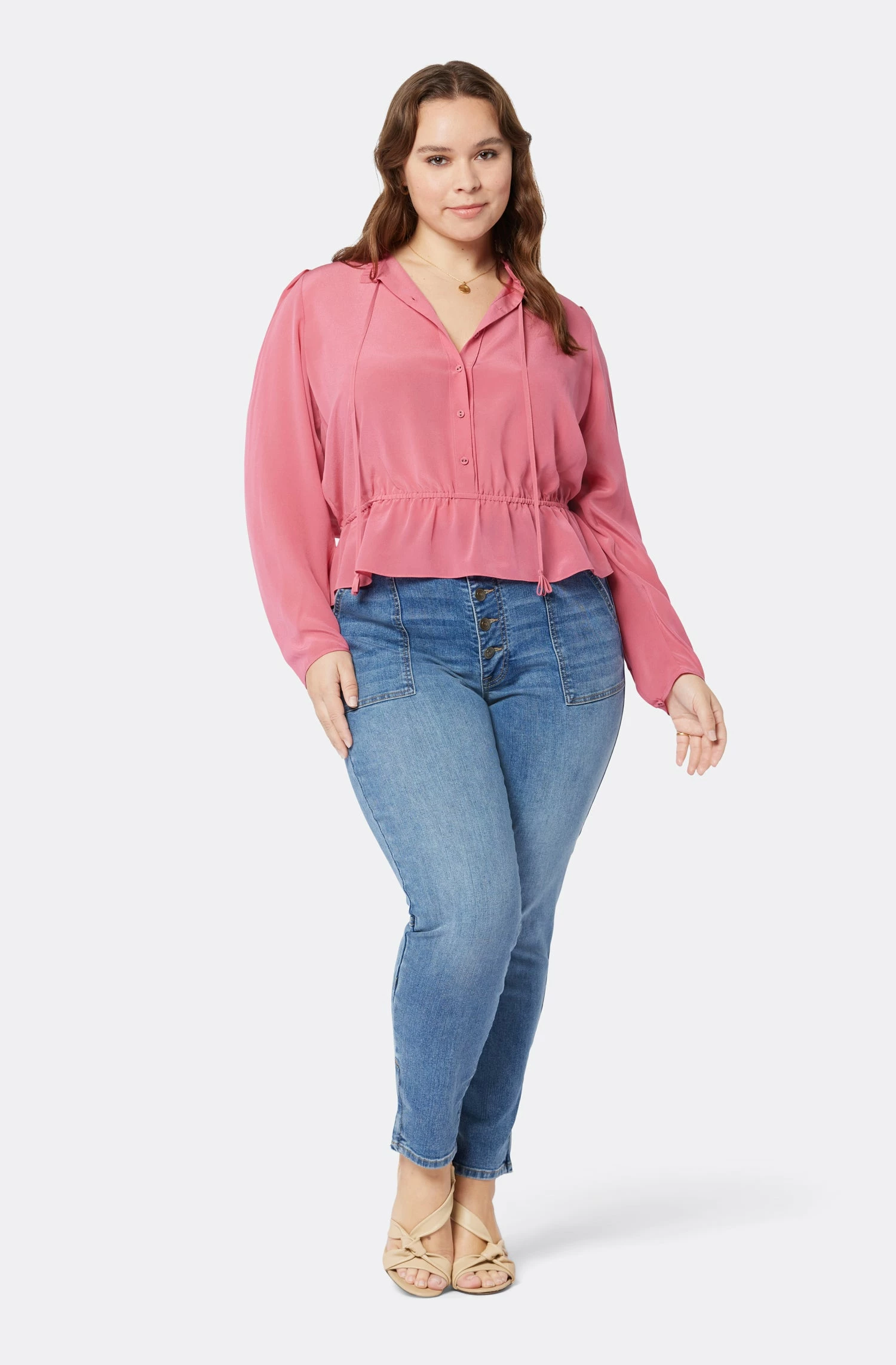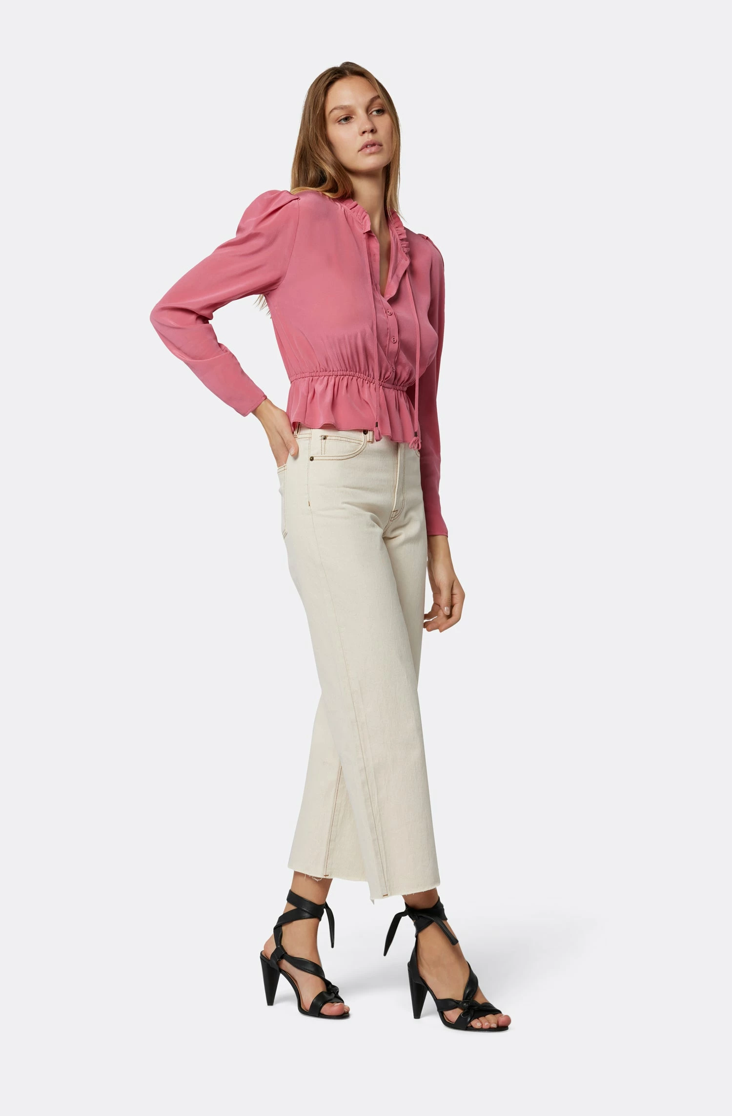 The silk Willow Top brings attitude and flair to your style thanks to its throwback-inspired cut that includes voluminous shoulders, an elasticated waistband, and a drawstring necktie. This cropped top looks great with our high-waisted denim designs.
